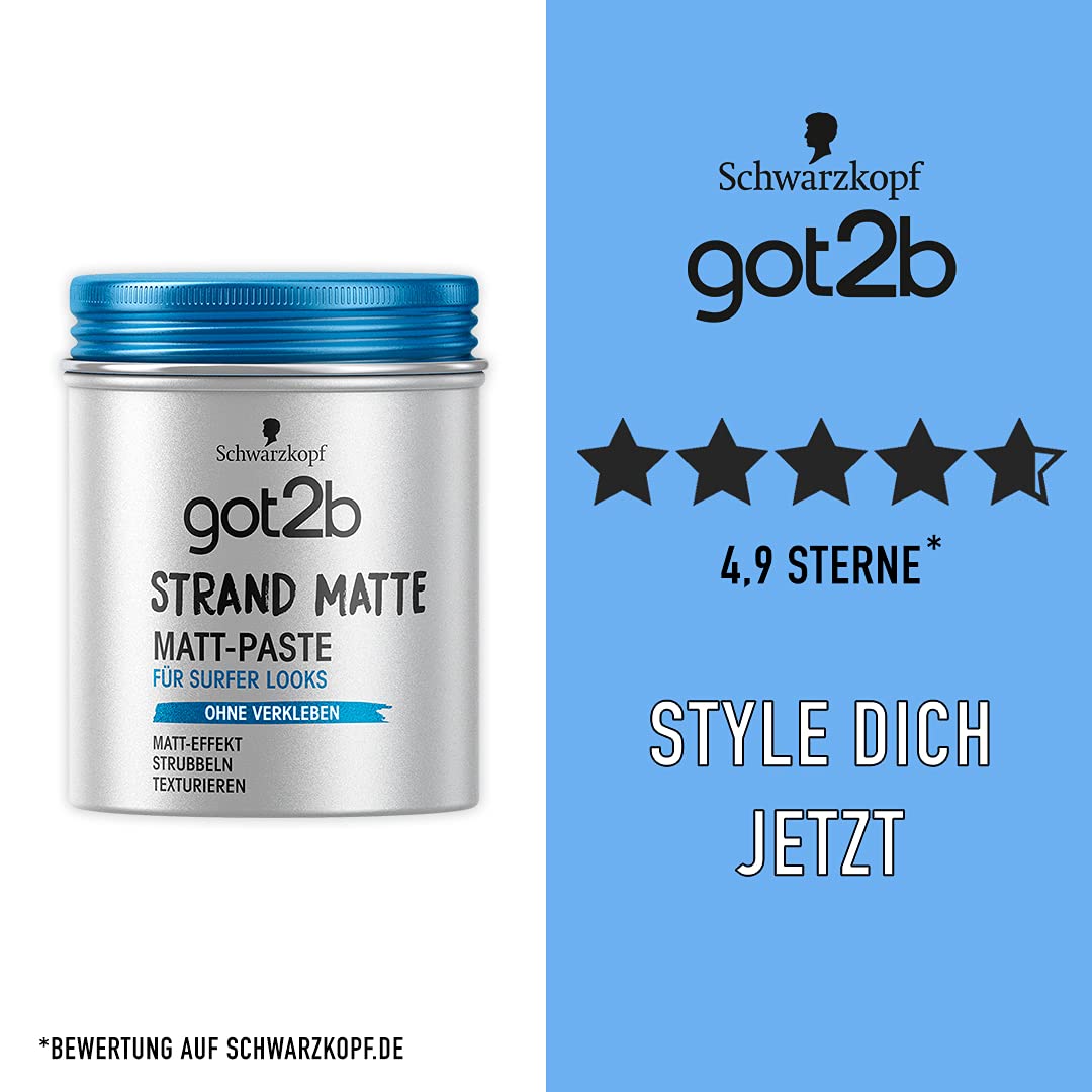 Schwarzkopf got2b beach matt paste hair matt effect texturiser 100ml. Schwarzkopf got2b strandmatte matt paste beach matte 100 ml surfer look for men. How to create got2b matt styles: Use on damp or dry hair. Get the surf style look! This item schwarzkopf got2b strand matte styling paste. If you would like to return anything purchased directly from chemist direct, you may return your got2b beach matte paste order within 28 days, for a refund or exchange. Schwarzkopf got2b beach matt paste 100ml. Schwarzkopf got2b beach matt surfer look matt paste (100ml). It's got to be got2b! Use on dry or damp hair. Get the surf style look! Find many great new & used options and get the best deals for 2 x schwarzkopf got2b beach matt paste 100ml at the best online prices at ebay!